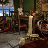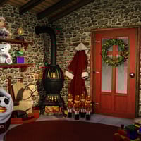Santa's Toy Workshop is a stand-alone cottage with river-rock walls, a concrete tiled floor and heavy beams supporting a gabled ceiling. The cabin windows are adorned with green wooden shutters and a red door completes the setting. The cottage alone is perfect for fairy tale renders (think of a group of dwarves) or a hunting cabin for your deep woods renders.