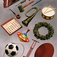 This set is huge and includes a ready to load scene with all the lighting and render settings used in the promotional images. It even includes something to view out the windows! And to make it simple for kit bashing, several preset "groups" are included that will load right into the scene fully assembled, such as Santa's Workstation, or a preloaded shelf of toys.