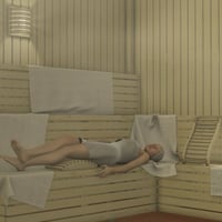A large sauna suitable for a health club or luxury hotel. There are several highly detailed props and two steam layers to help add atmosphere.