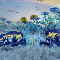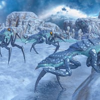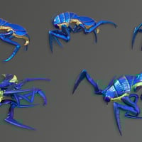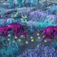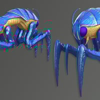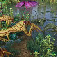 An insectoid animal that hunts from ambush in the meadows of a distant planet.