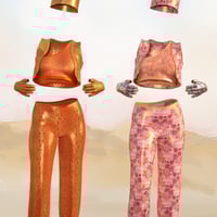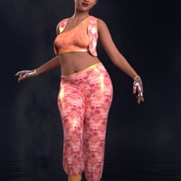 The Sisters in Chaos are delighted to offer the Khat Set. Khat is 6 pieces of loveliness, consisting of a bra, a vest, right and left gloves, cuffed pants, and a sporty hat. The Vest and Pants are dForce, but the rest of the outfit is conforming. The Gloves may take a bit of time to settle, depending on the speed of your processor.