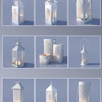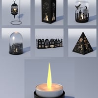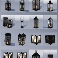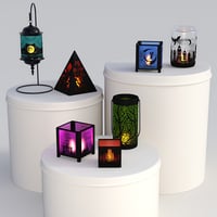 In this Silhouette Lantern set, you will find 19 lanterns with emissive tea lights. A black and a white material set is included, as well as 9 light color materials.