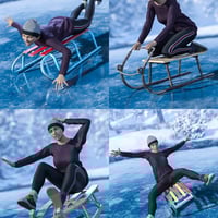 There are poses that give your characters the chance to fly down a hill, haul their sled UP the slope, careen wildly over the snow, topple, flop, ride on their belly - whatever you need for your scene.