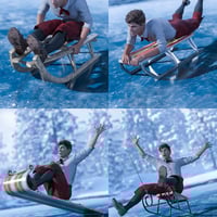 No one can resist the urge to slide down a snow covered hill. Dig out those old Vintage Sleds and let your Genesis 8 Male and Female models enjoy the winter fun with these 20 3D digital hierarchical pose presets. Both the Genesis 8 Male and the Genesis 8 Female has a pose designed specifically for one of the 10 sleds found in the Vintage Sled 1 & Vintage Sled 2 packs. Each of the hierarchical pose presets has your model interacting with the appropriate sled. Included in this set for ease of use are 20 wearable presets that will load the different sleds onto the Genesis 8 Male and Genesis 8 Female models, saving you the time and energy of setting both models up to look good in a pose.