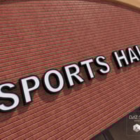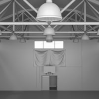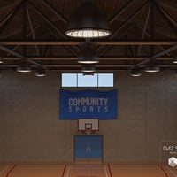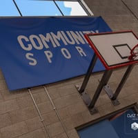 A detailed small sports hall with basketball hoops and wall banners. All parts are modular and can be hidden for easy access and lighting, all doors can be opened. Available for both Iray and 3Delight.