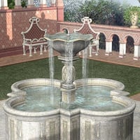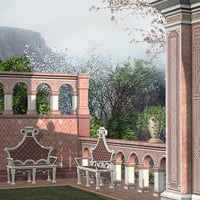 The set features richly detailed props, a morphing waterfall, exquisite benches and beautiful landscape gardens.