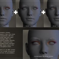 The flat nail polish colors however, could easily be applied to Genesis 8 Female instead of using a shell, as the shell is more for the nail designs. The Stardust packs allow a total of 16 shells to be loaded at one time, though you probably won't end up needing them all. Each Geometry Shell lays one on top of the other, with shells like eyeshadow base being underneath the inner eye, to make sure that the inner eye lays on top, just like if you were applying eyeshadow in real life.