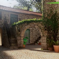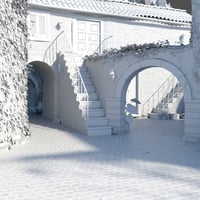 Stone Mediterranean Courtyard brings you a Mediterranean courtyard equipped with plants, tunnels, arches, a swimming pool, some props, and a small building with which you can recreate a beautiful environment and put the characters of your choice
