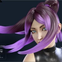 Add lots of dynamic action to your fantasy renders with this stylized hairstyle made of 3 long tails. Each tail comes with two bones for easy-to-use posing. The first bone bends the tail completely, the second one adds curve movement. For easy posing you can also make use of the global dials that move all tails around at the same time, side to side as well as front to back.