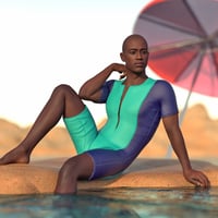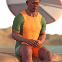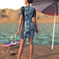 A fully functioning surf suit, complete with 12 texture options. A fun little beach vignette prop set is also included as an added bonus, consisting of a little island beach, towel, table, umbrella, pitcher, coconut drink, and surfboard.