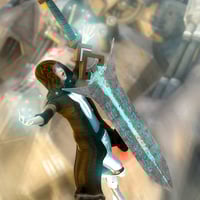 ''Ooh, that one's a beauty! The blade halves are carved from the stone of Mount Stormwrack, while the focusing crystal was mined from its heart! It's held together by that energy field, but the blade can close on command. With the blade closed, it's MUCH lighter than it would normally be, as the magic holding it together is refocused. Just don't take it into an anti-magic zone.