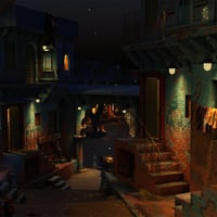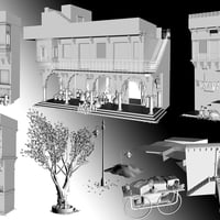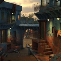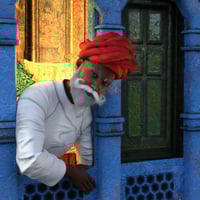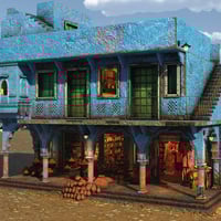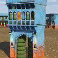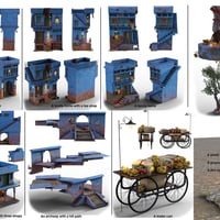 The set contains a Gate House, family home, family home with a tea shop, building with three shops, archway with a hill path, tree shrine, trader's cart, street lamp, dirt mound, and ground plane. This is a kit and not a complete set, so you simply load up what you want, position them to form your scene, and render. It is possible to create many different looking sets from the props.
