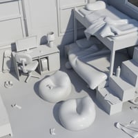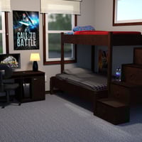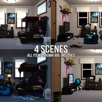 Laser guns, video games and scattered laundry, oh my! This bedroom set not only comes with a spiffed up clean version, but the messy versions are sure to give your render everything it needs, sans the smell of dirty socks!