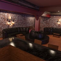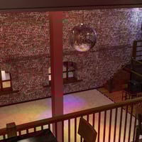 Beautiful brickwork adorns the walls throughout, with hardwood floors completing the look. Original lighting and shelving created from old pipes, and rough hewn ceiling beams add to the vintage charm of the building. Neon lights, spotlights, and a giant mirror ball add an exciting ambience to the space.