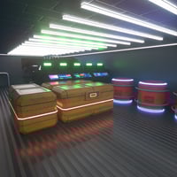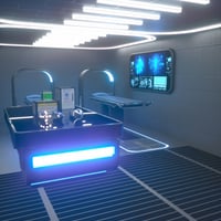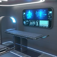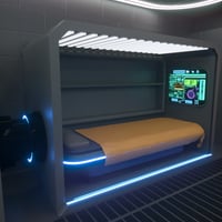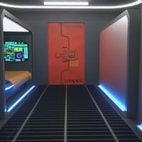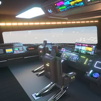 This is a middle-size class starship able to sleep 4 travelers. The Hammerhead X7A Explorer has an animatable cockpit with movable chairs, and engine shifting gears. All doors on the starship are animatable as well as the toilet, shower, bed chambers, medical bay and engine room.
