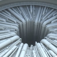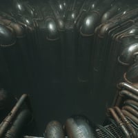 The Hollow is a dark, atmospheric 3D environment of pipes, concrete, and a deep chasm that draws you in.