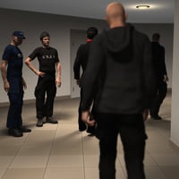 Other elements to support 3D renderings based around this line up prop: - One suspect room (where the suspects line up) and one witness room. These two rooms come with outlets, baseboard, switches, one table and one rack of papers, doors you can open or close and other elements such as chairs and a clock. Two different separation walls can be loaded between the suspect and witness rooms: one with a small “2-way” mirror, the second with a larger one - both of which come with several materials for the mirror. For external renders of the rooms, through open doors for instance, you will find one surrounding hall.