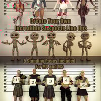 - In order to work faster, you will also find starter lights and cameras for immediate renders or as support for your scene creations, as well as five standing suspect poses with cards for M4 and M5 and five poses for the cards themselves. One Portrait pose is also included.