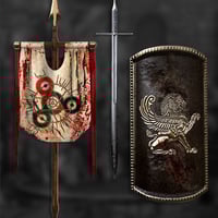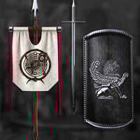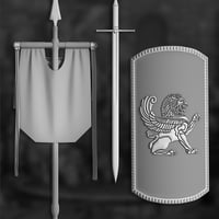 Raise your banners and arm yourselves with the shield of The Lion War Pack as you head into battle. These war items are decorated with magnificent emblems of power: the Lion Banner and the Lion Shield.