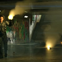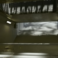The Underpass, with a curved hallway, stairs, and a large middle chamber, is great for your zombie, subway, subterranean, sci-fi, or whistleblower scene.