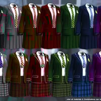 The Materials provided cover and assortment of plain colors (as you would expect) several matching plaids for the Skirt and plenty of vibrant stripey options for the tie. Also included are a number of partial materials which will alter the Blazer badge design and trim color, reduce skirt length and more.