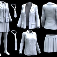 The outfit includes six wearable items including; A blazer jacket & matching skirt, a Cotton Shirt, two ties (long and short) and a pair of simple tights as a bonus.