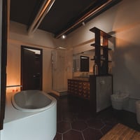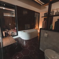 Come in using the two huge wooden doors and walk through the walk-in closet using a door that is seamlessly put together with the wall, or the other door for the beautiful bathroom!