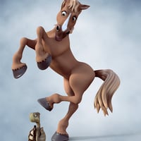 Meet the funniest cartoon horse in all the land! With a goofy grin on his face and a spring in his step, this little guy loves nothing more than galloping around the countryside, stopping only to tell a good joke or two.