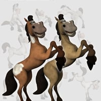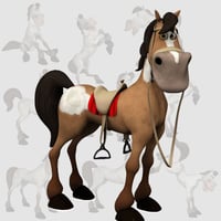 Custom fully poseable Mimic-Compatible toon horse complete with poses and conforming riding gear.