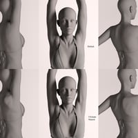 The scapula movement morphs are connected to the collar bones. Front-Back, Bend Up-Down, Twist movements are sculpted to express shifting scapula shapes.