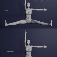 When thighs are bent forward, the buttocks express a more natural look . Use of multi-rotational JCMs allow leg movement with minimum distortion at the thigh/pelvis joints and with natural thigh muscular definition. This makes legs flexible enough to take more extreme poses like ballet splits while retaining beautiful and natural thighs.