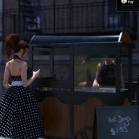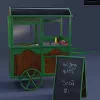 Placed on a city street corner or at a county fair the hot dog cart is a great place for your characters to grab a snack and have fun.