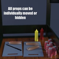 The cart comes complete with Iray and 3Delight shaders and several additional props including Hot Dog and Bun. Sauce bottles and soda cans. The doors on the cart open using a slider, one door reveals a shelf for storing your props on the move and the other door reveals the gas cylinders required for the hot plate.