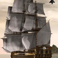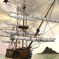 Inspired by an eighteenth century Breton merchant ship. This package includes two ship models, one with sails furled and the other with sails extended. The rich and natural tones of the wood and sails reflecting in the water are guaranteed to give you pristine renders.