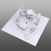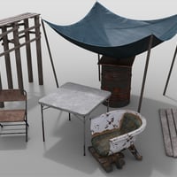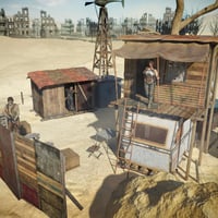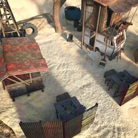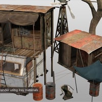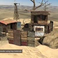 This set includes a variety of structures and props for a wasteland settlement set up. All props can be loaded individually and some are available as convenient preloads.