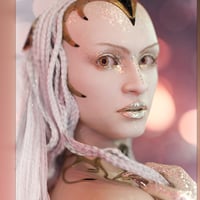 This product comes with 3 different body and facial shapes, plus several extras like fantasy elf ears and long talon options for hands and feet. Fibermesh brows and lashes complete Wenisha's look.