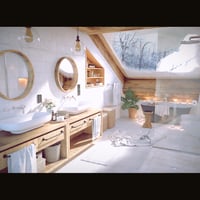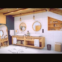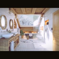 There is nothing like having a warm cabin in the cold winter. The contemporary Winter Vacation Bathroom is a must-have for your cozy winter scenes. This set contains a bathtub, sink, and mirror, including 42 separate props and 8 subset groups. All lights and materials are set up for Iray.