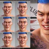 The pack contains 40 One-click presets for Kwan 8 and 40 for Genesis 8 Male to quickly load an expression. Then mix the morph dials to get new facial expressions and adjust the intensity from 0 to 100 for the perfect look for your scene.