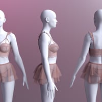 This set includes a beautiful bralette, a flowy skirt, and matching bottoms that are all meticulously designed to highlight the feminine curves of your character.