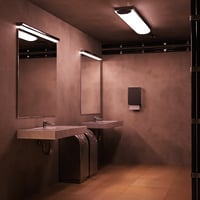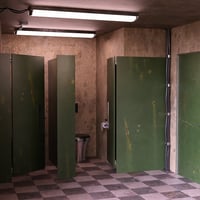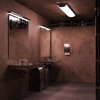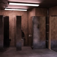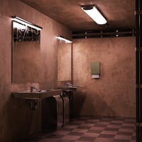 This bathroom comes in three versions, one clean and 2 dirty versions. It's very well suited for a hotel or gas station bathroom.