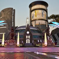 The bundle includes a Street, a Temple, a Throne room interior and a spaceship.