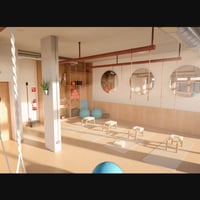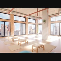 Yoga Club Classroom is a well-designed interior yoga room in a contemporary Yoga Club.