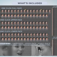 The set includes upper and lower facial expressions, both as dials and one-click, so you can mix and match these expressions to create endless possibilities. You can also mix in several different expressions at once, thanks to the power of dials, to give you even more possibilities.