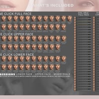 The set includes upper and lower face expressions, both as dials and one click, so you can mix and match these expressions to create endless possibilities.