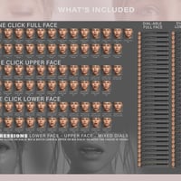 The set includes upper and lower face expressions, as dials and one click, so you can mix and match these expressions to create endless possibilities.