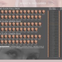 The set includes upper and lower face expressions, both as dials and one click, so you can mix and match these expressions to create endless possibilities.