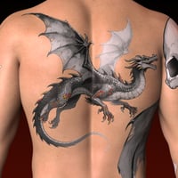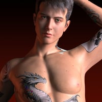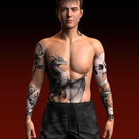 Zev's main feature is a stunning, high-definition, full-body tattoo set. This isn't just for him! Crafted as versatile Layered Image Editor (LIE) presets, these intricate tattoos can be applied to any Genesis 9 character, male or female. Transform your favorite figures with a breathtaking dragon that wraps from chest to back, detailed skull and rose sleeve tattoos, and other stylish motifs. Apply the full masterpiece or use individual elements like the arm sleeves, chest piece, or back tattoo to create countless unique looks.